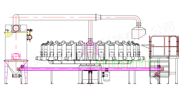 物料通過條碼掃描后,需要加料的儲料斗自動運行至加料平臺處,停穩(wěn)后自動開門機構(gòu)將加料門自動打開,再通過物料運輸帶將物料運送至加料平臺處,然后,操作人員即可解包加料。生產(chǎn)開始前,操作人員在配料筐上套好塑料袋,然后通過管理計算機發(fā)送需要生產(chǎn)的配方后系統(tǒng)開始自動運行。此時,儲料斗會按配方設(shè)定的工藝自動運行至操作位停下,操作人員開始配料。然后配料筐依次運行至操作位,操作人員重復(fù)上述配料過程。操作人員在配料過程中,電子秤會根據(jù)計算機里的工藝設(shè)定稱量值和允許誤差值來判斷稱量是否合格、只有稱量合格后配料筐才會自動轉(zhuǎn)到下一個工位。按工藝配方加完一種物料后,系統(tǒng)儲料斗驅(qū)動裝置啟動尋找下一個需要配料的儲料斗并自動將其運行至操作位,然后再按上所述操作。直至完成所生產(chǎn)的工藝配方的所有物料后,系統(tǒng)會警示操作人員取料。