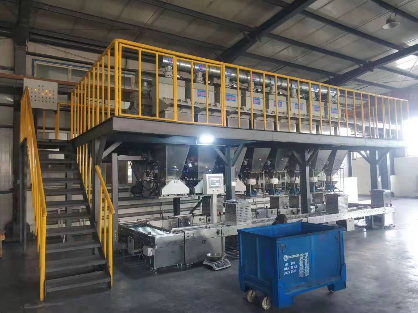 此系統(tǒng)由解包斗、儲(chǔ)斗、加料裝置、電子配料秤、校核用電子秤、操作輥道、運(yùn)輸輥道、除塵系統(tǒng)及控制系統(tǒng)組成。操作人員將塑料袋套在配料筐上(也可以由機(jī)械手自動(dòng)套、取袋),配料筐在定位運(yùn)輸輥道、升降轉(zhuǎn)向輥道、電子配料秤、校核秤上自動(dòng)運(yùn)行;配料時(shí),各配料筐按工藝配方要求,自動(dòng)運(yùn)行到相應(yīng)電子配料秤上定位,自動(dòng)扣除皮重,由加料裝置按照預(yù)先設(shè)置的配方自動(dòng)向配料筐內(nèi)加料;物料配好后,經(jīng)校核秤校驗(yàn),自動(dòng)運(yùn)行到定位輥道上等候取料。操作人員取出配好料的塑料袋(也可以由機(jī)械手自動(dòng)套、取袋),放上新塑料袋,系統(tǒng)將自動(dòng)準(zhǔn)備開(kāi)始新一輪循環(huán)工作。
